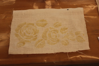 Samaan sarjaan kuuluu herneet ja kangas! Tiistai-ilta meni mukavasti telkkaria katsoessa ja solmiessa herneitä kiinni kankaaseen... Estokuviointeja tehtiin myös erilailissa ompeleilla.